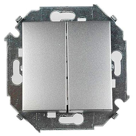 Выключатель 2-клавишный кнопочный Simon SIMON 15, скрытый монтаж, алюминий, 1591398-033